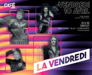 Drag show, DJ set, animé par Jodye Coaster et avec La Big Bertra, Britany Hart, Itarixy, Vendom...